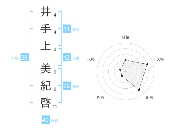 井手上 美紀啓さんを姓名の画数から五運を鑑定