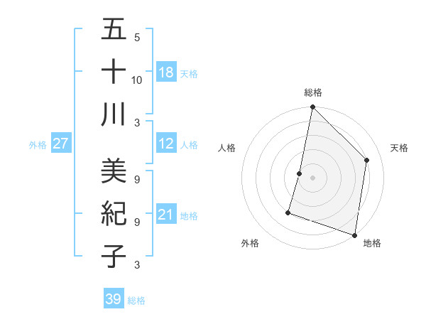 五十川 美紀子さんを姓名の画数から五運を鑑定