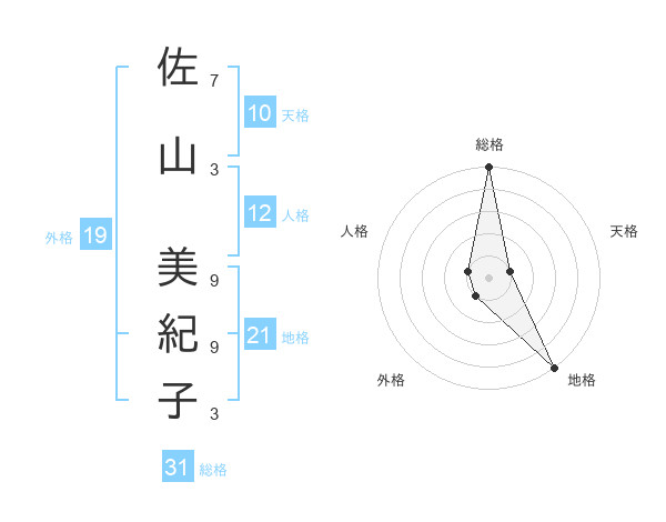 佐山 美紀子さんの総格は31画の5点!