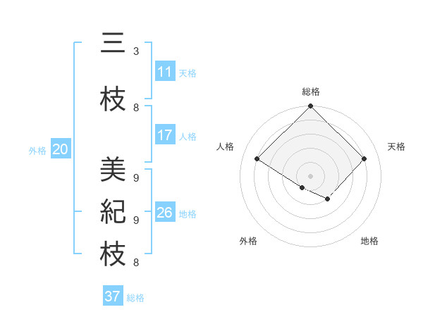 三枝 美紀枝さんを姓名の画数から五運を鑑定