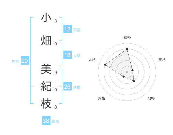 小畑 美紀枝さんの総格は38画の4点