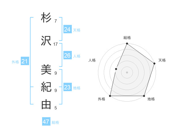 杉沢 美紀由さんの総格は47画の5点!