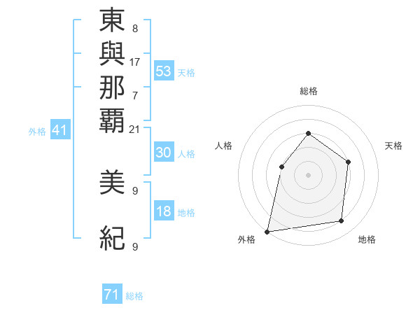 東與那覇 美紀さんを姓名の画数から五運を鑑定