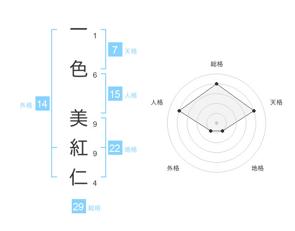 一色 美紅仁さんを姓名の画数から五運を鑑定