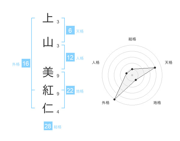 上山 美紅仁さんを姓名の画数から五運を鑑定