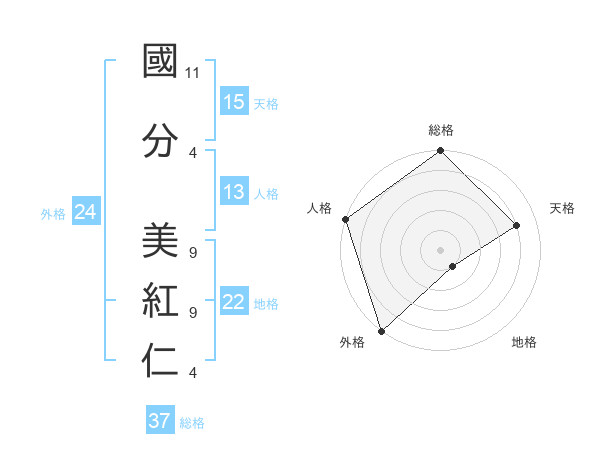 國分 美紅仁さんの総格は37画の5点!