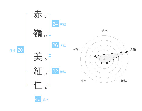 赤嶺 美紅仁さんを姓名の画数から五運を鑑定