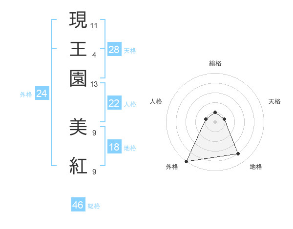 現王園 美紅さんを姓名の画数から五運を鑑定