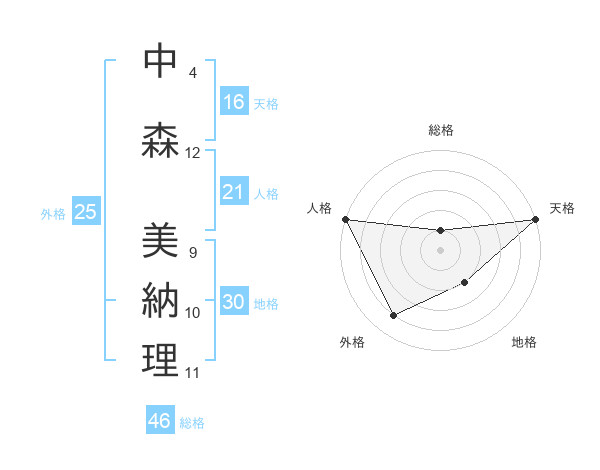 中森 美納理さんの天格は16画の5点!