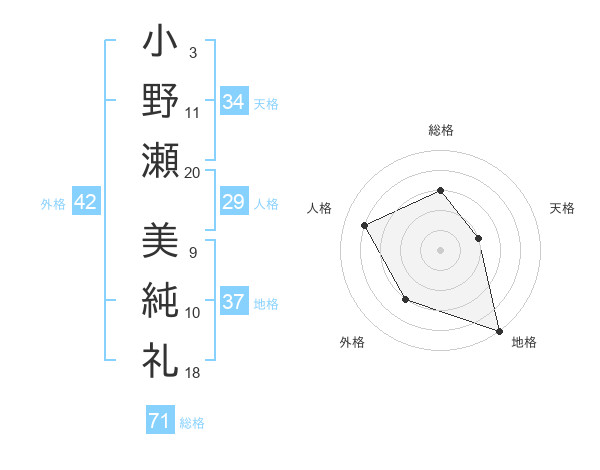 小野瀬 美純礼さんを姓名の画数から五運を鑑定