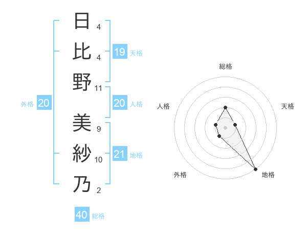 日比野 美紗乃さんを姓名の画数から五運を鑑定