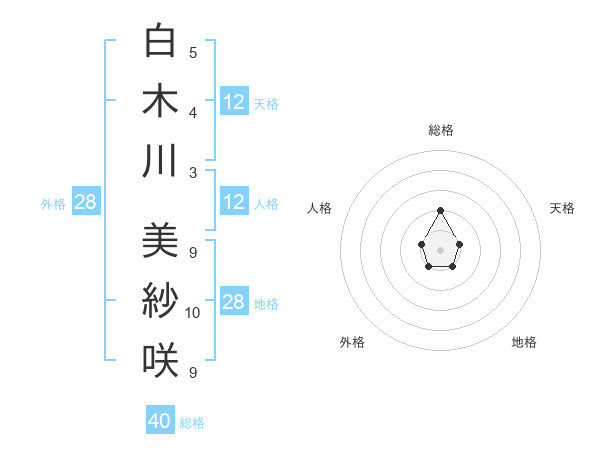 白木川 美紗咲さんの総格は40画の2点