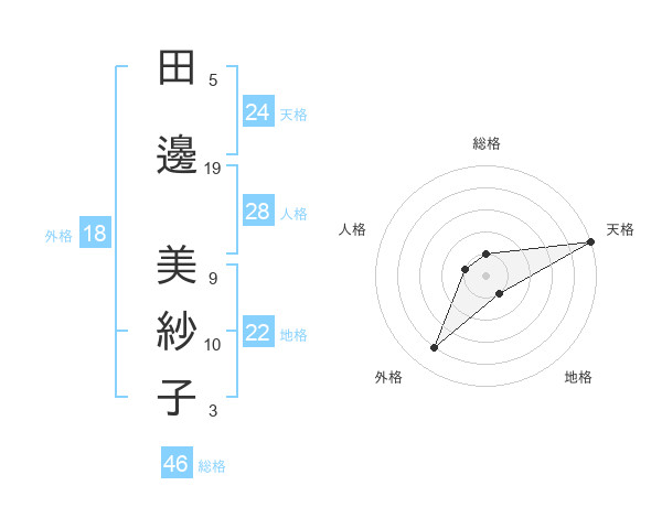 田邊 美紗子さんを姓名の画数から五運を鑑定