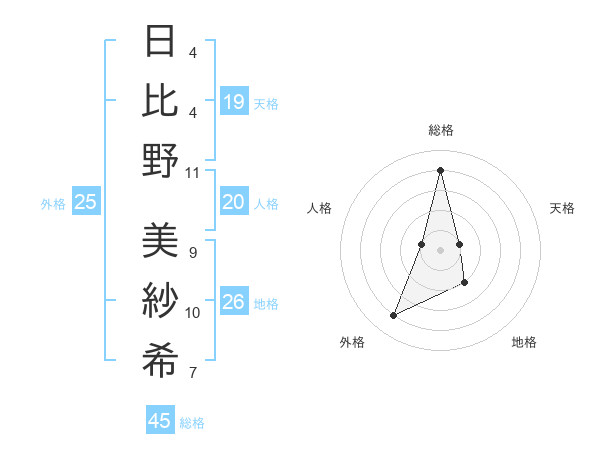 日比野 美紗希さんを姓名の画数から五運を鑑定