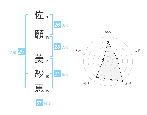 佐願 美紗恵さんを姓名の画数から五運を鑑定