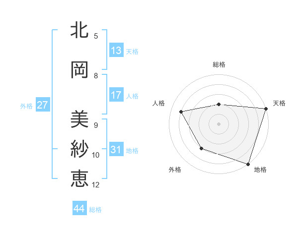 北岡 美紗恵さんを姓名の画数から五運を鑑定