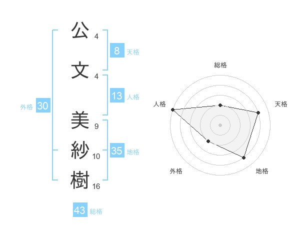 公文 美紗樹さんを姓名の画数から五運を鑑定