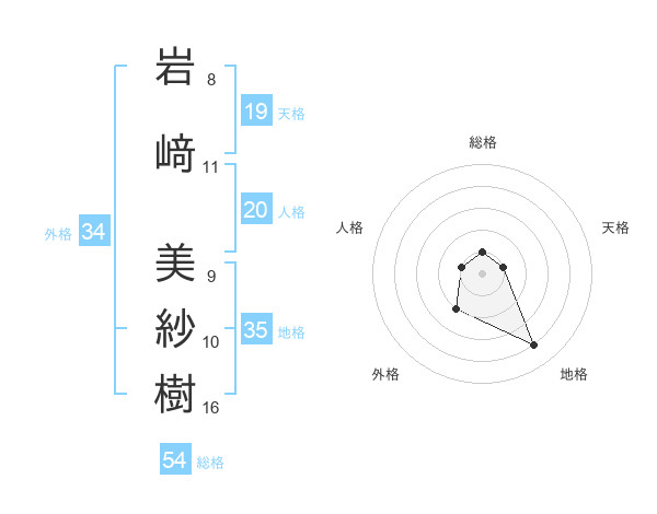 岩﨑 美紗樹さんを姓名の画数から五運を鑑定