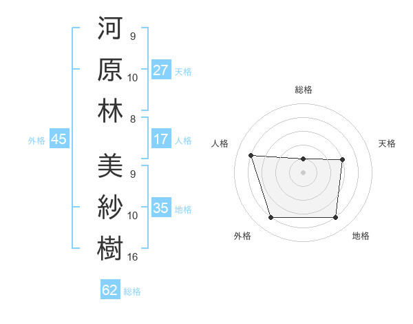 河原林 美紗樹さんを姓名の画数から五運を鑑定