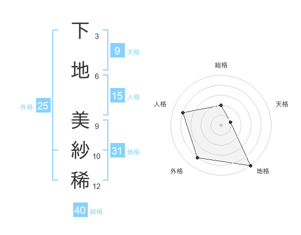 下地 美紗稀さんの地格は31画の5点!