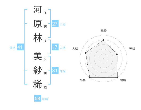 河原林 美紗稀さんを姓名の画数から五運を鑑定