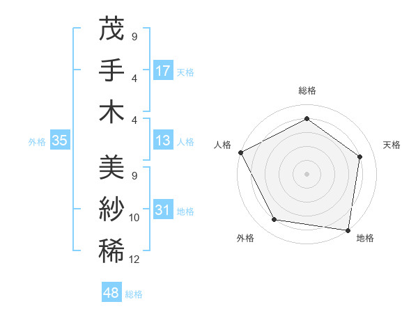 茂手木 美紗稀さんを姓名の画数から五運を鑑定