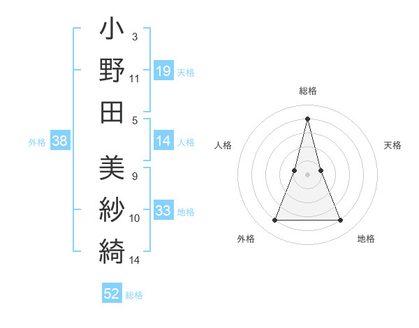 小野田 美紗綺さんの総格は52画の4点!