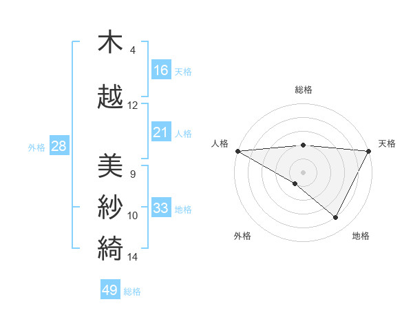 木越 美紗綺さんを姓名の画数から五運を鑑定