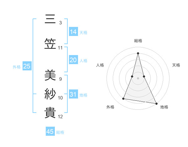 三笠 美紗貴さんを姓名の画数から五運を鑑定