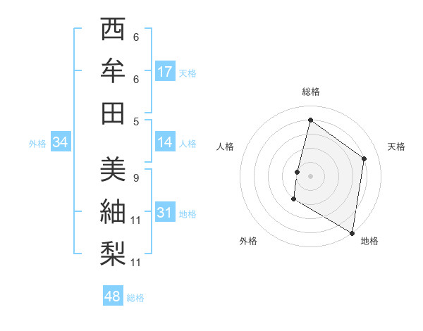 西牟田 美紬梨さんを姓名の画数から五運を鑑定