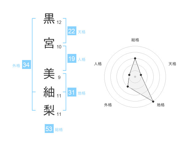 黒宮 美紬梨さんの総格は53画の3点!
