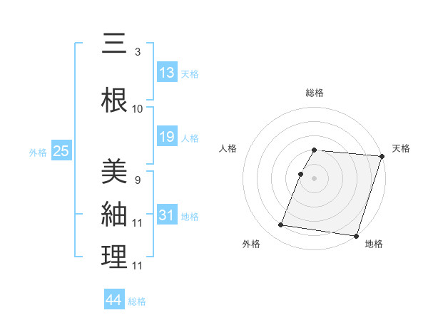 三根 美紬理さんを姓名の画数から五運を鑑定