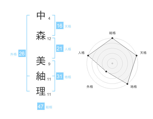 中森 美紬理さんの総格は47画の5点!