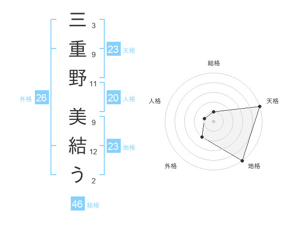 三重野 美結うさんの天格は23画の5点!