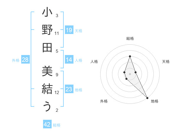 小野田 美結うさんを姓名の画数から五運を鑑定
