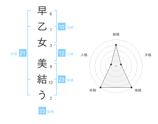 早乙女 美結うさんの外格は21画の5点!