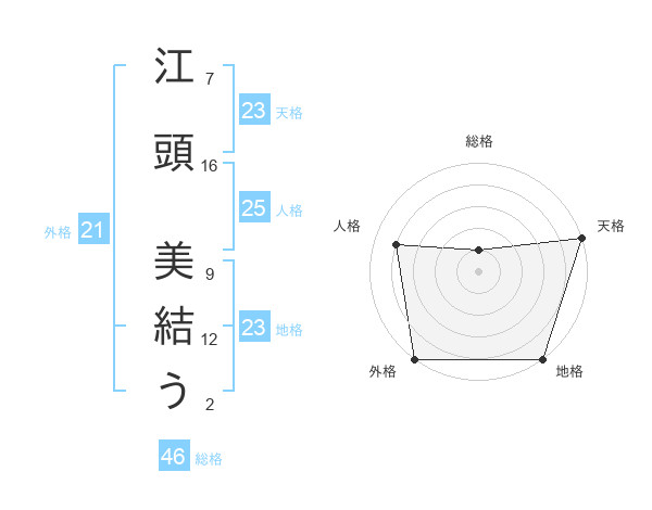 江頭 美結うさんの地格は23画の5点!