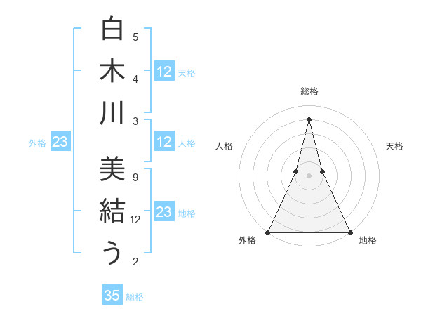白木川 美結うさんを姓名の画数から五運を鑑定