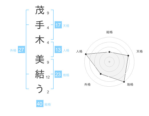 茂手木 美結うさんの天格は17画の4点