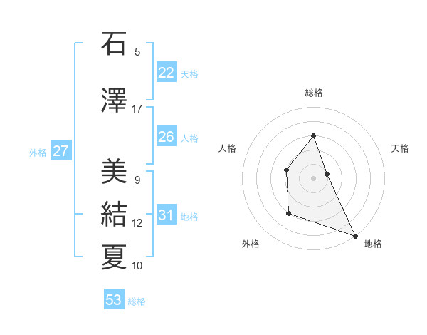 石澤 美結夏さんの総格は53画の3点!