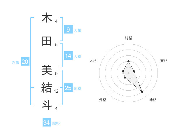 木田 美結斗さんを姓名の画数から五運を鑑定