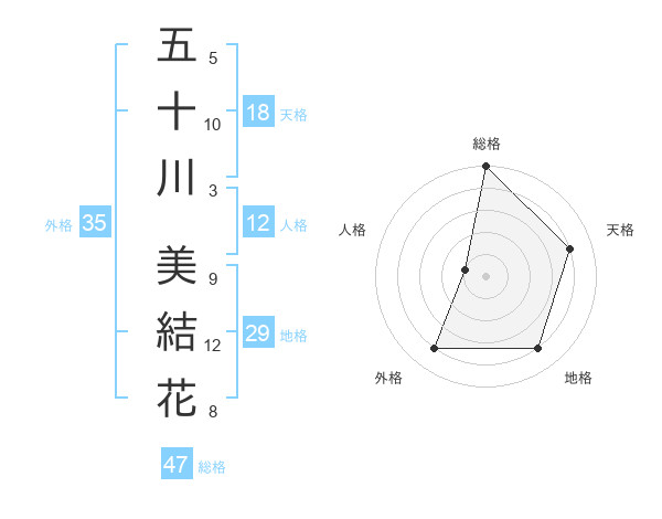 五十川 美結花さんの総格は47画の5点!