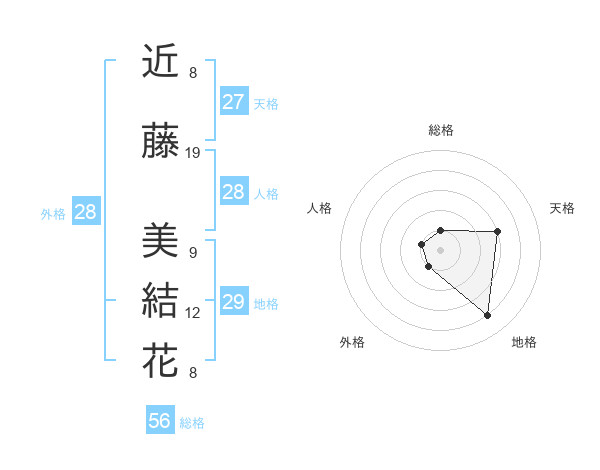 近藤 美結花さんを姓名の画数から五運を鑑定