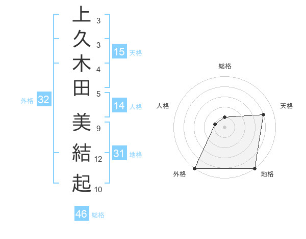上久木田 美結起さんを姓名の画数から五運を鑑定