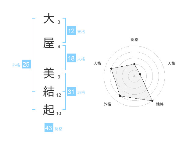大屋 美結起さんを姓名の画数から五運を鑑定