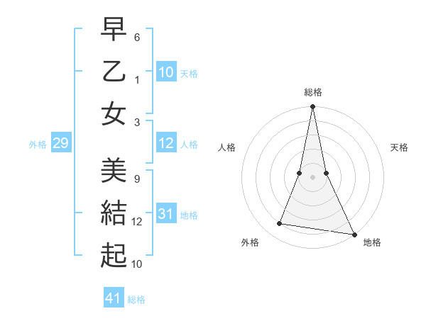 早乙女 美結起さんを姓名の画数から五運を鑑定