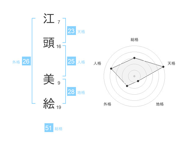 江頭 美絵さんを姓名の画数から五運を鑑定