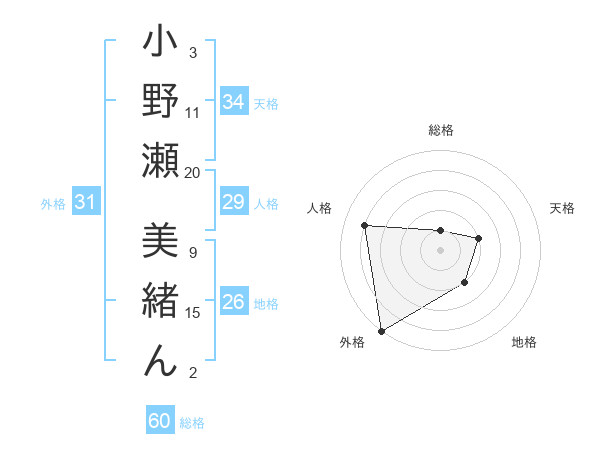 小野瀬 美緒んさんを姓名の画数から五運を鑑定