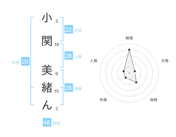 小関 美緒んさんを姓名の画数から五運を鑑定