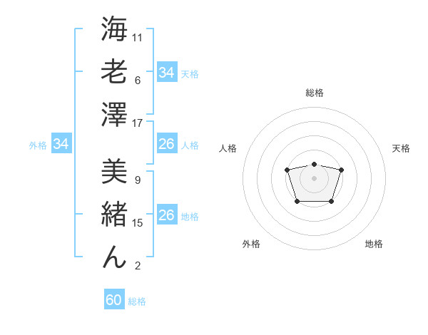海老澤 美緒んさんを姓名の画数から五運を鑑定